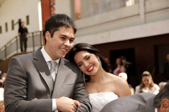 Com uma decoração em mini margaridas e rosas em tons claros, Fabio entrou na cerimônia acompanhado por sua mãe, Irani. Larissa encantou a todos com o vestido modelo sereia rendado e ao lado de seu pai.